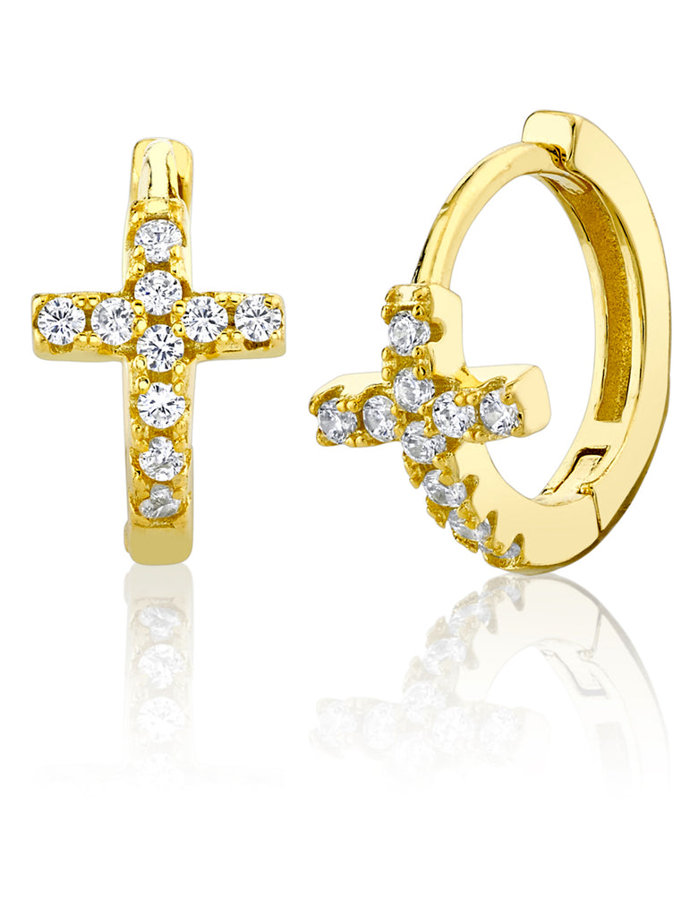• Pair of matching set Cross design huggie hoop earrings, pick from goldtone or silver.