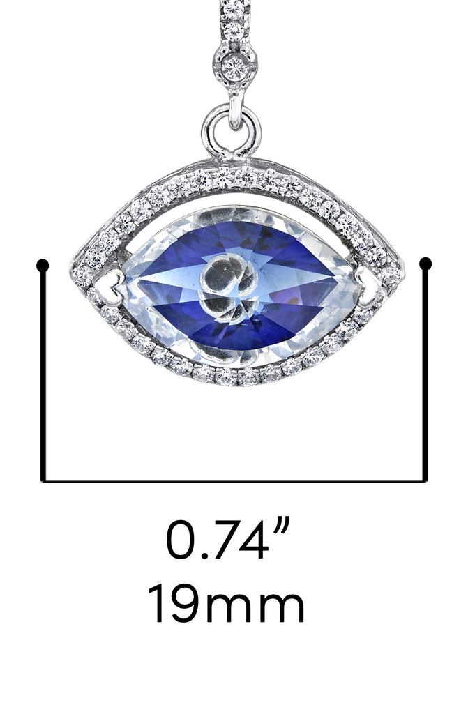 Hanging elegantly from a shiny rolo chain is this cubic zirconia studded Evil Eye pendant. The sparkling CZs create a compelling contrast against the ocean blue charm. Crafted with 925 Sterling Silver, this beautiful Evil Eye pendant is meant to protect the wearer from misfortunes and bad luck.