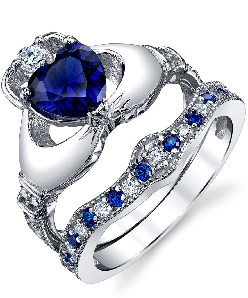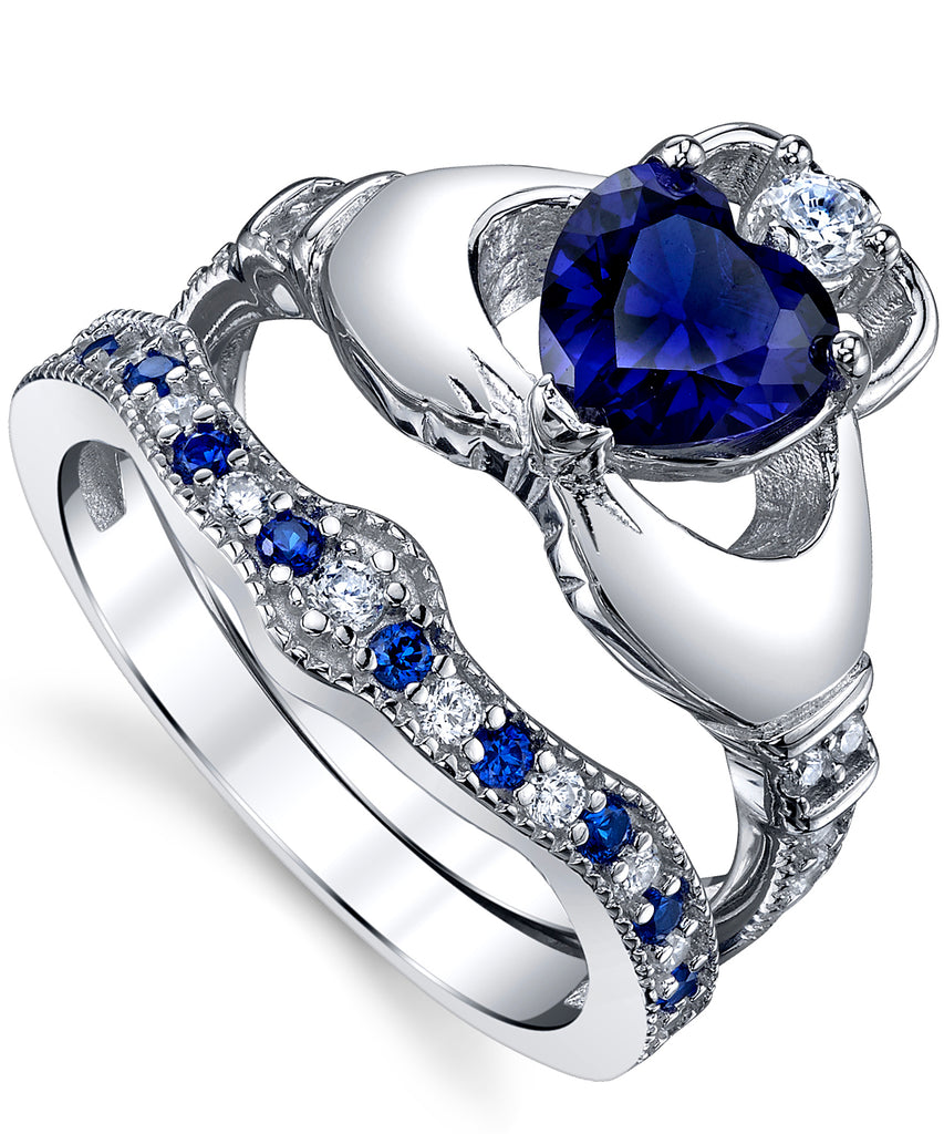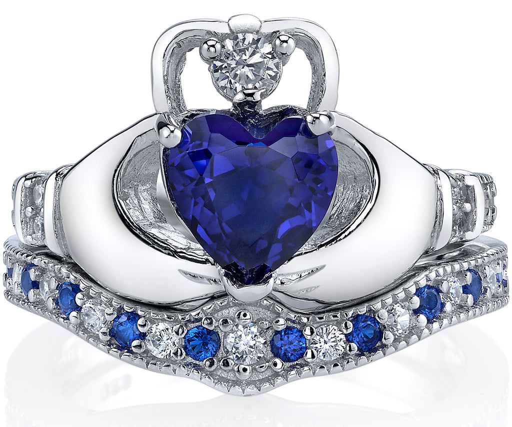 This timeless sterling silver ring features a claddagh design with a distinctive feminine feel. Inspired by the traditional Irish symbol for love, loyalty and friendship, this ring is crafted of sterling silver and adorned with blue and white cubic zirconia cz. The center of the ring is set with a simulated sapphire blue color heart shape cubic zirconia. The rings is rhodium plated and come with a Complimentary Ring Box.