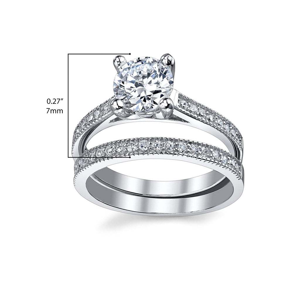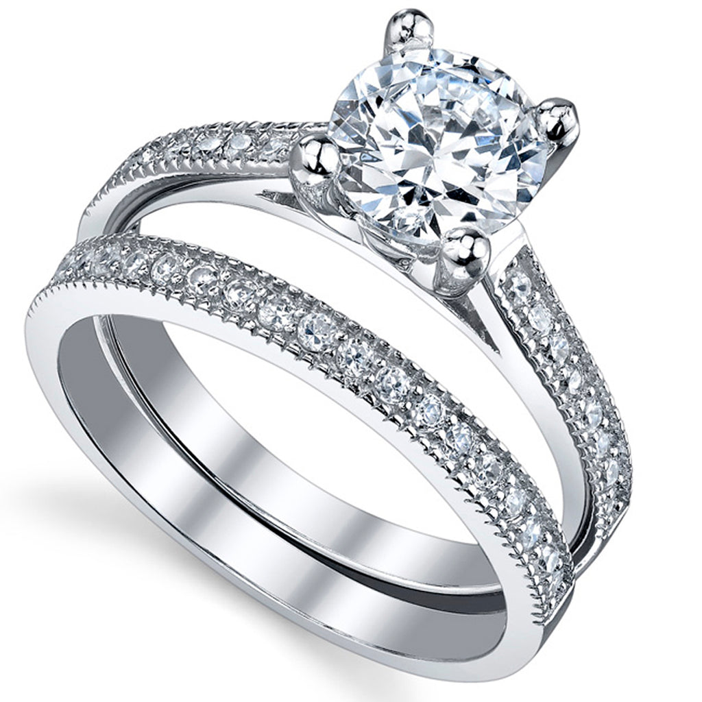 Pop the question with this fabulous Sterling Silver women's wedding ring set. A matching wedding band embellished by tiny, round-cut, white cubic zirconias gracefully highlighting the shank.