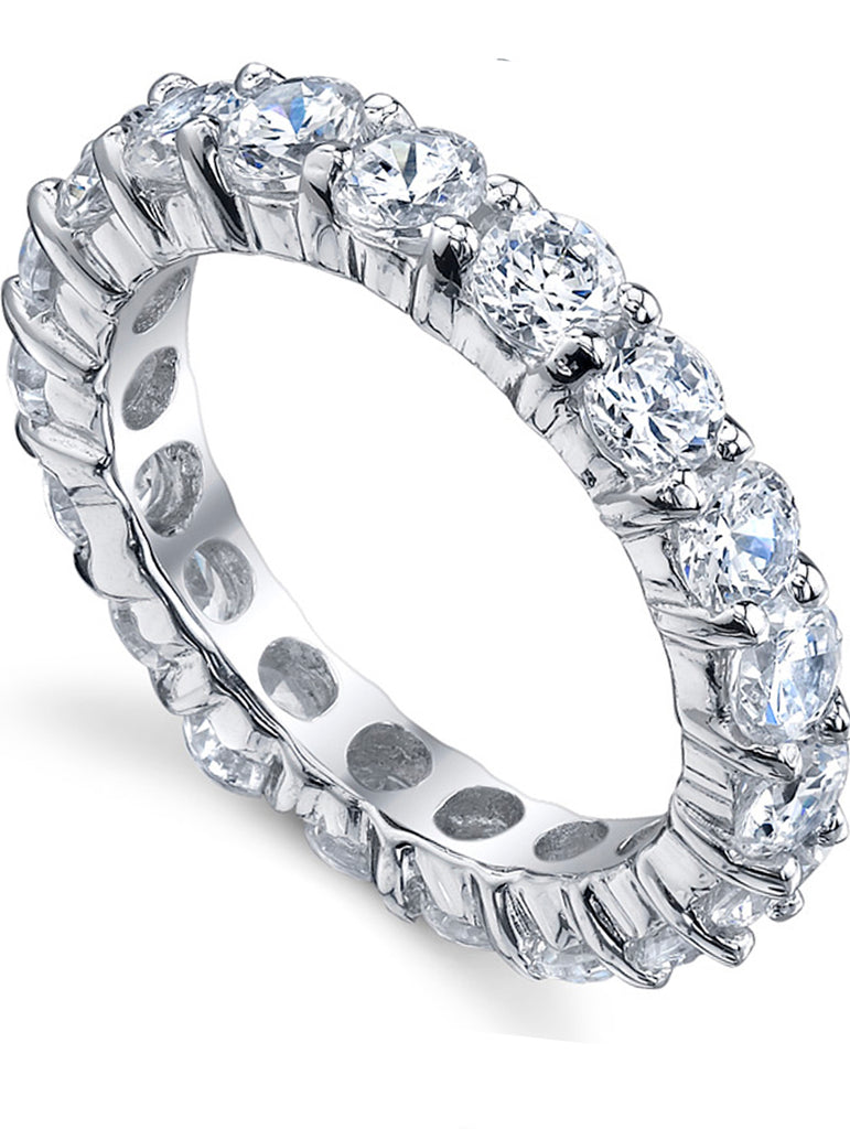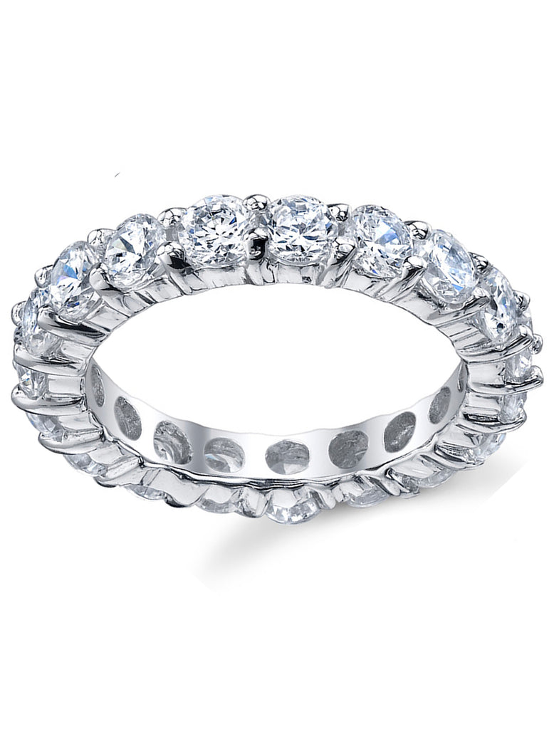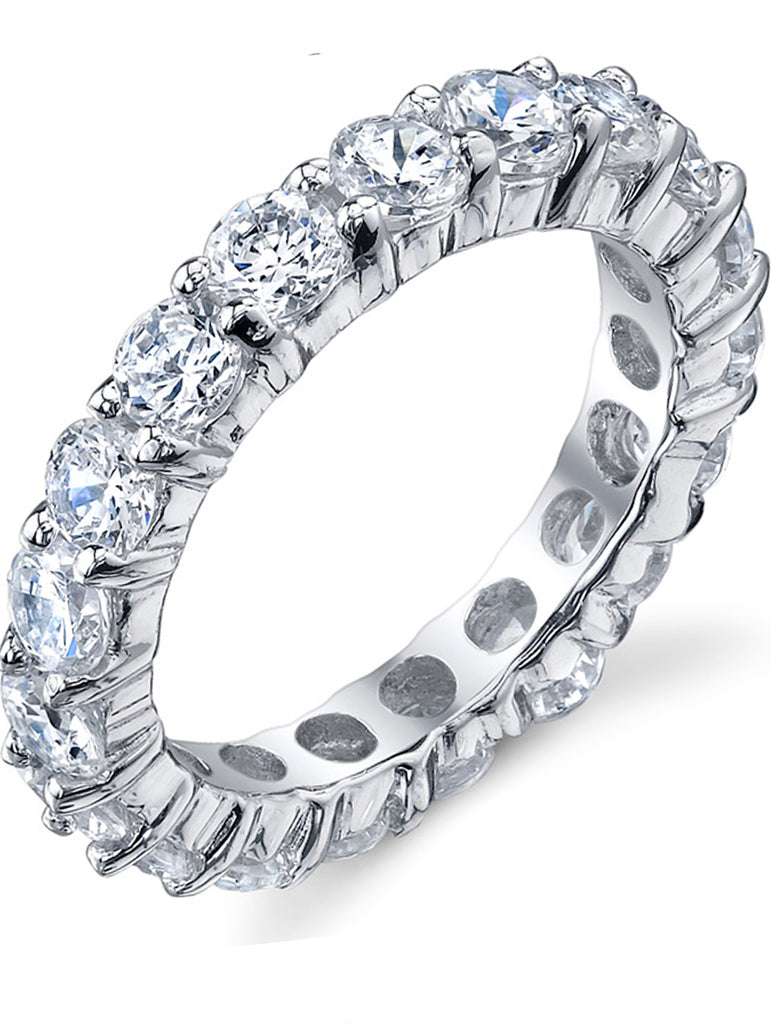 This designer inspired eternity wedding ring is made out of 925 sterling silver. The band is 3.5mm in width, and is set with clear Cubic Zirconia. The ring comes with a Complimentary Ring Box!!