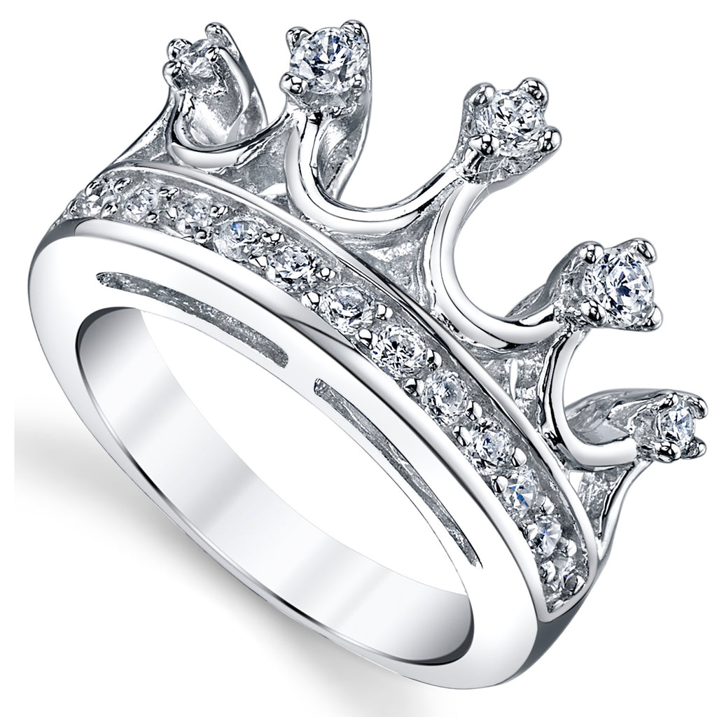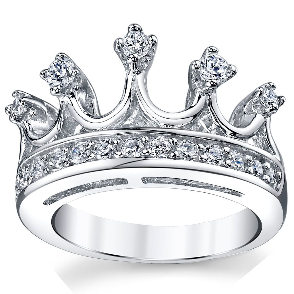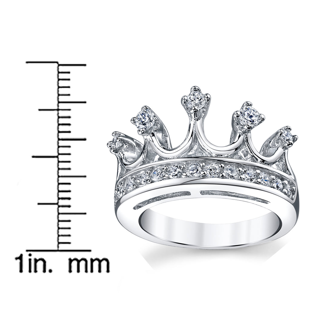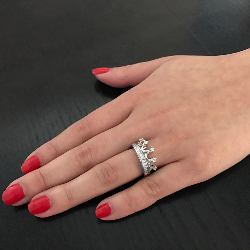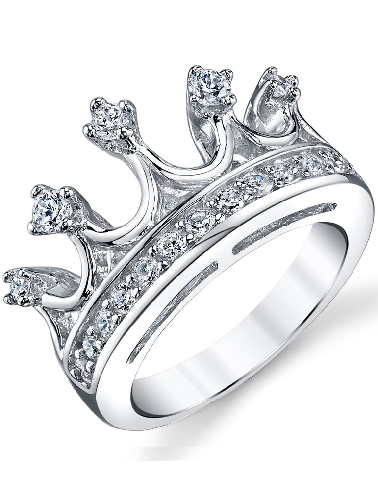 Beautiful tiara crown band ring with cubic zirconia. Rhodium plated ring.