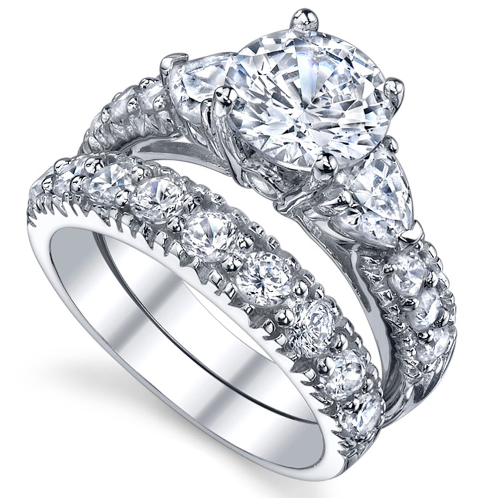 Sterling Silver 925 Engagement Ring Set Bridal Rings With Cubic Zirconia CZ