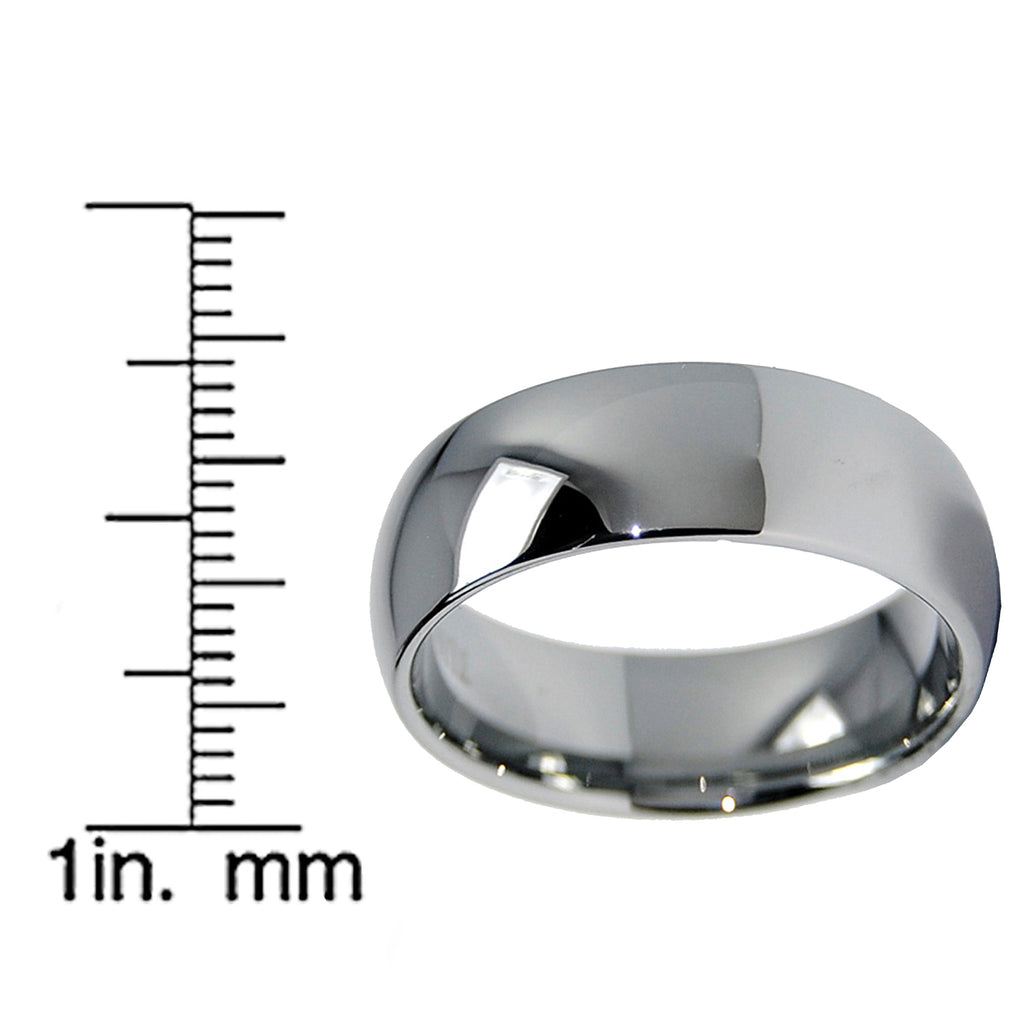 This beautiful tungsten carbide ring is 8MM in width and comfort fit. It is Dome and all high polish . If you are looking for a ring that is scratch proof and forever keep its shine, than our Tungsten Carbide rings are for you. All of our Tungsten rings are Cobalt Free and hypoallergenic. Our rings Due to the Hardness of Tungsten, these rings can be laser engraved, but not hand engraved. All ring come with a Complimentary Leather Ring Box.