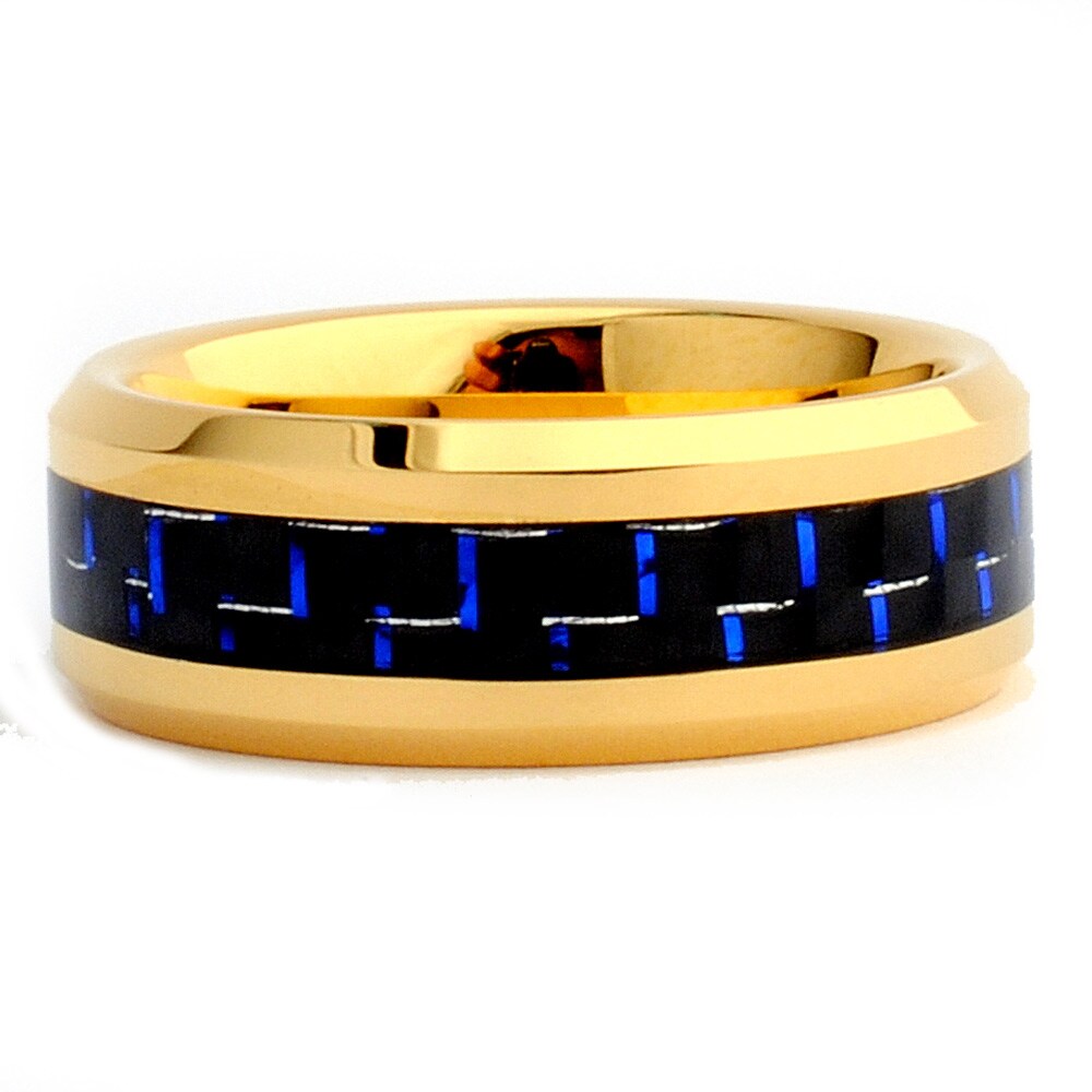 This beautiful tungsten carbide ring is 8MM in width and comfort fit. It has a black and blue carbon fiber inaly. If you are looking for a ring that is scratch proof and forever keep its shine, than our Tungsten Carbide rings are for you. All of our Tungsten rings are Cobalt Free and hypoallergenic. Our rings Due to the Hardness of Tungsten, these rings can be laser engraved, but not hand engraved. All ring come with a Complimentary Leather Ring Box.