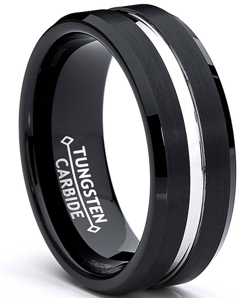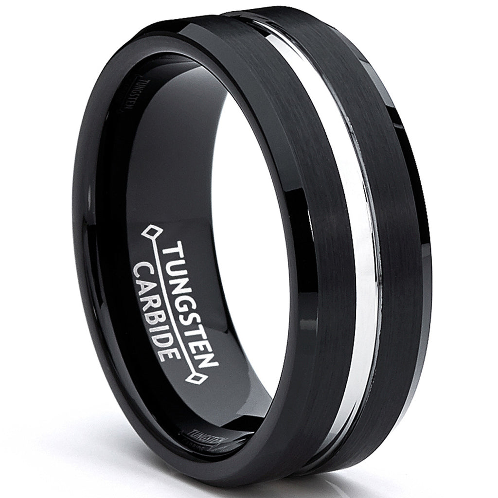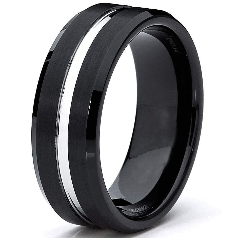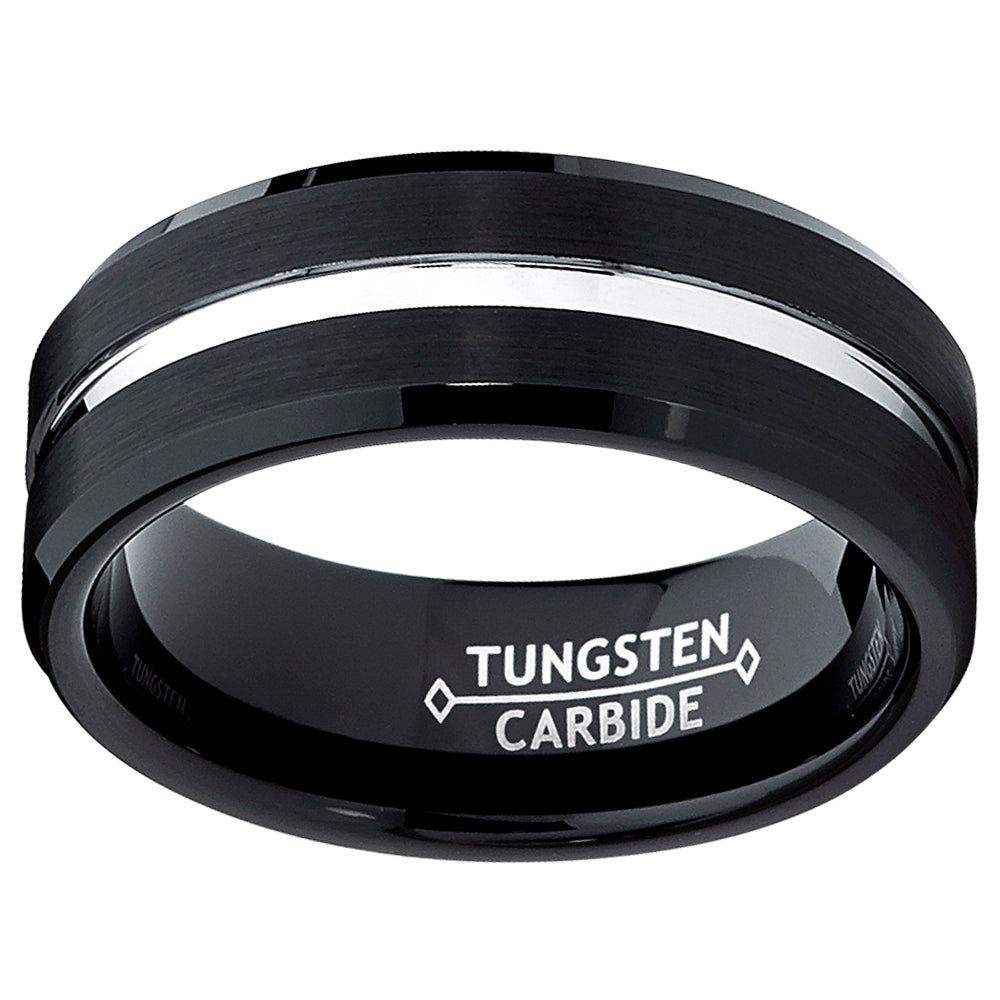This beautiful Black tungsten carbide ring is 8MM in width and comfort fit. It has a matte finish center that is grooved and high polish beveled edges. If you are looking for a ring that is scratch proof and forever keep its shine, than our Tungsten Carbide rings are for you. All of our Tungsten rings are Cobalt Free and hypoallergenic. Our rings Due to the Hardness of Tungsten, these rings can be laser engraved, but not hand engraved. All ring come with a Complimentary Leather Ring Box.