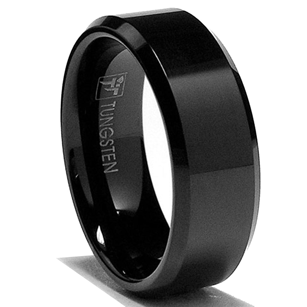This beautiful Black tungsten carbide ring is 8MM in width and comfort fit. It is all high polish with beveled edges. If you are looking for a ring that is scratch proof and forever keep its shine, than our Tungsten Carbide rings are for you. All of our Tungsten rings are Cobalt Free and hypoallergenic. Our rings Due to the Hardness of Tungsten, these rings can be laser engraved, but not hand engraved. All ring come with a Complimentary Leather Ring Box.