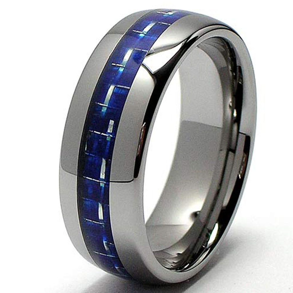 This beautiful tungsten carbide ring is 8MM in width and comfort fit. It is all high polish with blue carbon fiber inlay. If you are looking for a ring that is scratch proof and forever keep its shine, than our Tungsten Carbide rings are for you. All of our Tungsten rings are Cobalt Free and hypoallergenic. Our rings Due to the Hardness of Tungsten, these rings can be laser engraved, but not hand engraved. All ring come with a Complimentary Leather Ring Box.