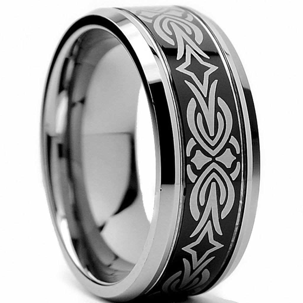 This beautiful tungsten ring is 9MM in width and comfort fit. It is Two Tone flat top, high polish with Etched Tribal Design. If you are looking for a ring that is scratch proof and forever keep its shine, than our Tungsten Carbide rings are for you. All of our Tungsten rings are Cobalt Free and hypoallergenic. Our rings Due to the Hardness of Tungsten, these rings can be laser engraved, but not hand engraved. All ring come with a Complimentary Leather Ring Box.