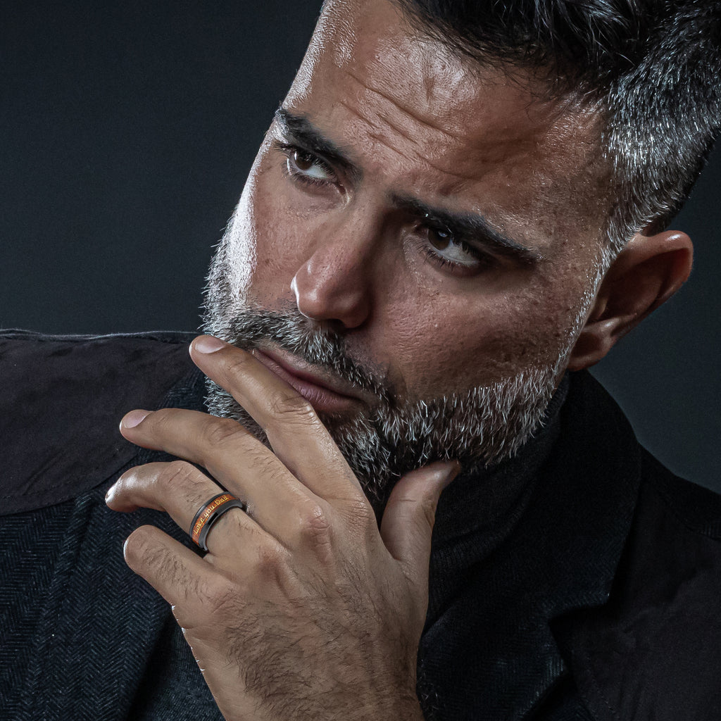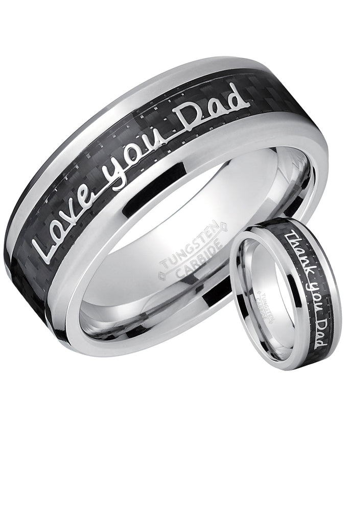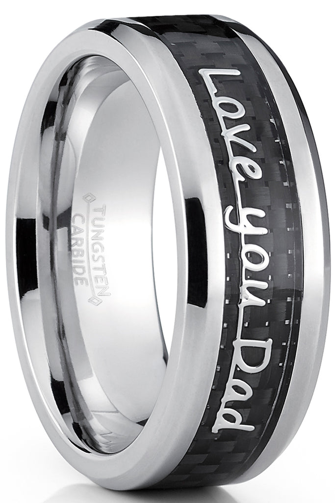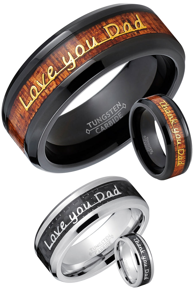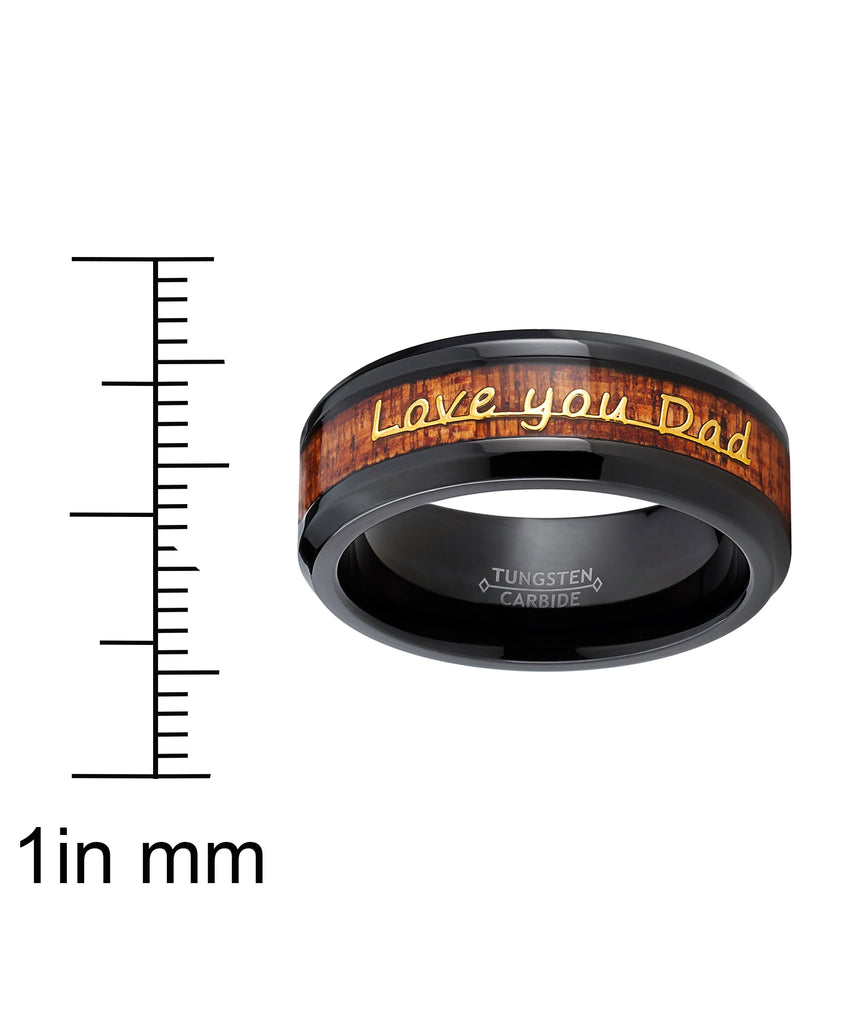 • Center of band is inlaid with carbon fiber/real koa wood and overlaid with "Love you Dad and Thank you Dad" on each side of the ring.