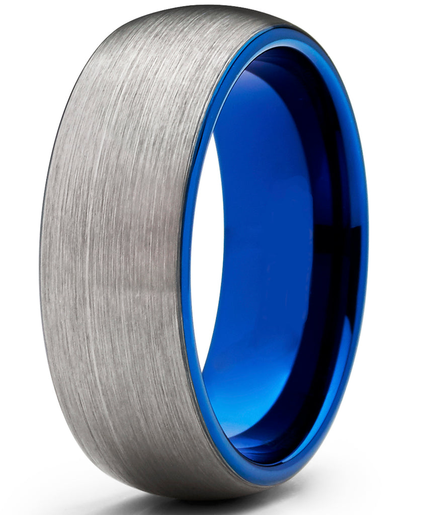 Celebrate your nuptials with this blue Tungsten men's dome wedding band. This heavyweight metal ring is both masculine and sophisticated with a brushed silver finish that provides subtle elegance. Simple and modern, it's a ideal complement for a lifelong commitment wedding band has a grey finish on the tungsten carbide metal.