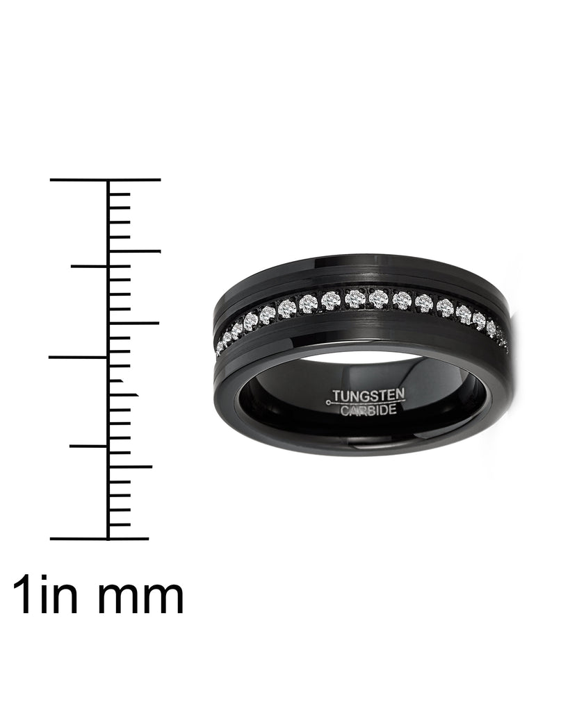 This elegantly stunning eternity ring for men adds just the right amount of shine with clear, bright Cubic Zirconia stones around the band; a ideal substitute for diamonds. Rely on the sturdy Tungsten Carbide metal for a durable piece of jewelry that stands up to the rigors of continuous wear for years to come. Can be used as an engagement, wedding band or promise ring for men..