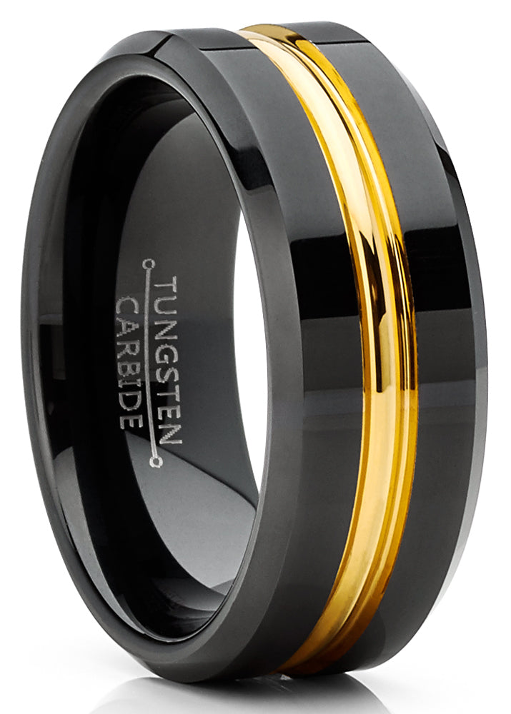 A man's ring says a lot about his character. Make a statement without saying a word and complete the look with this trendy tungsten wedding band for men.