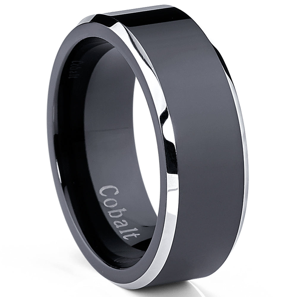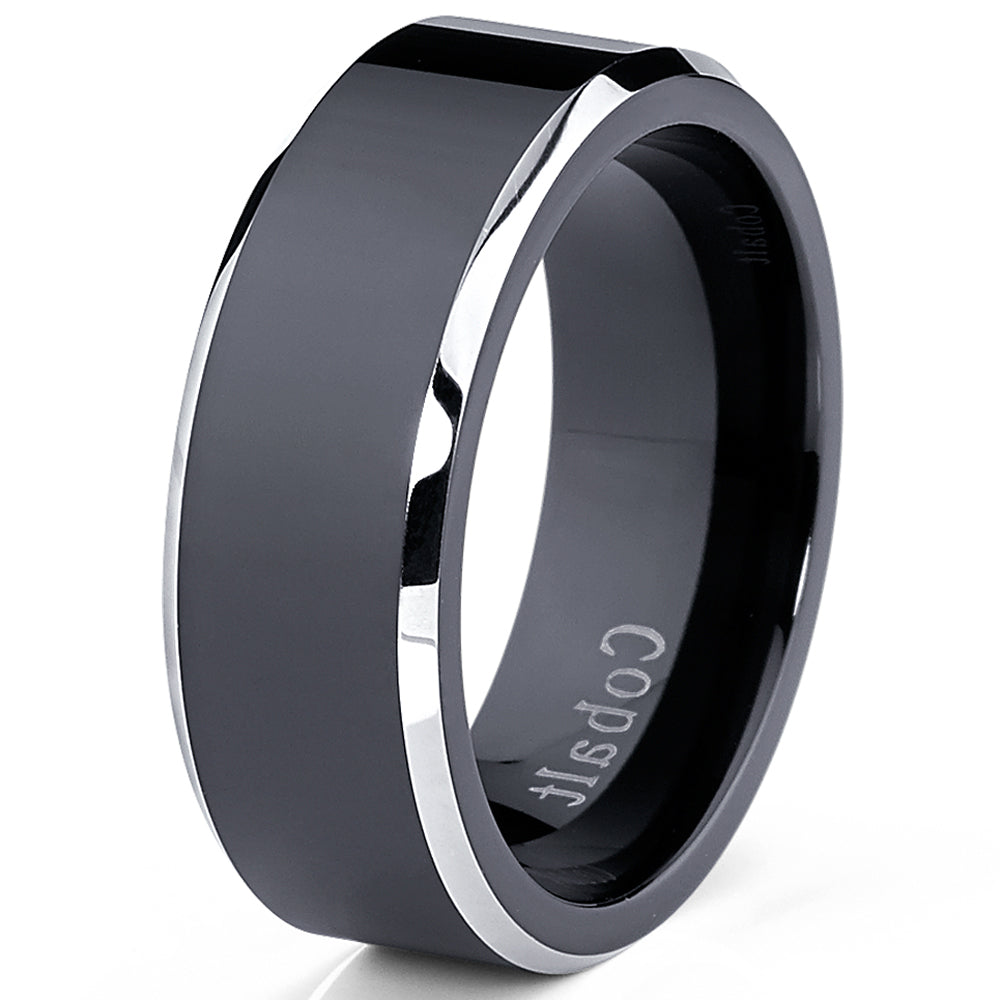 Crafted from solid cobalt chrome which is often used in medical applications such as prosthetics, this charming men's engagement ring/wedding band features two-tones colors in black and silvertone that could easily match with any outfit or occasion.