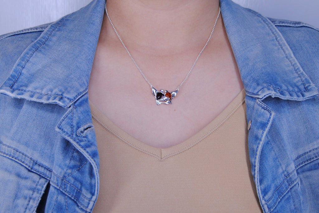 • Features two complimentaryd Birds pendant with Baltic Amber & Amethyst stones in orange and burgundy red.