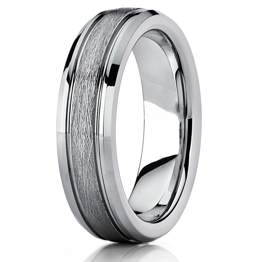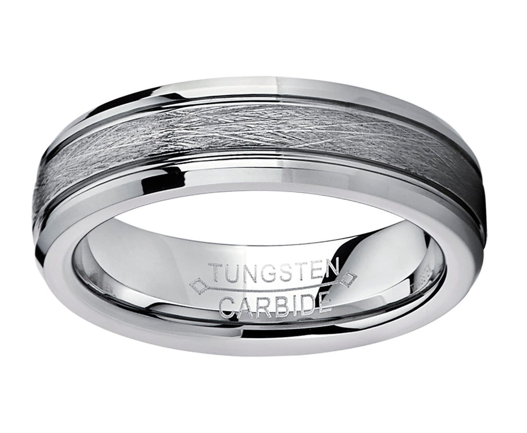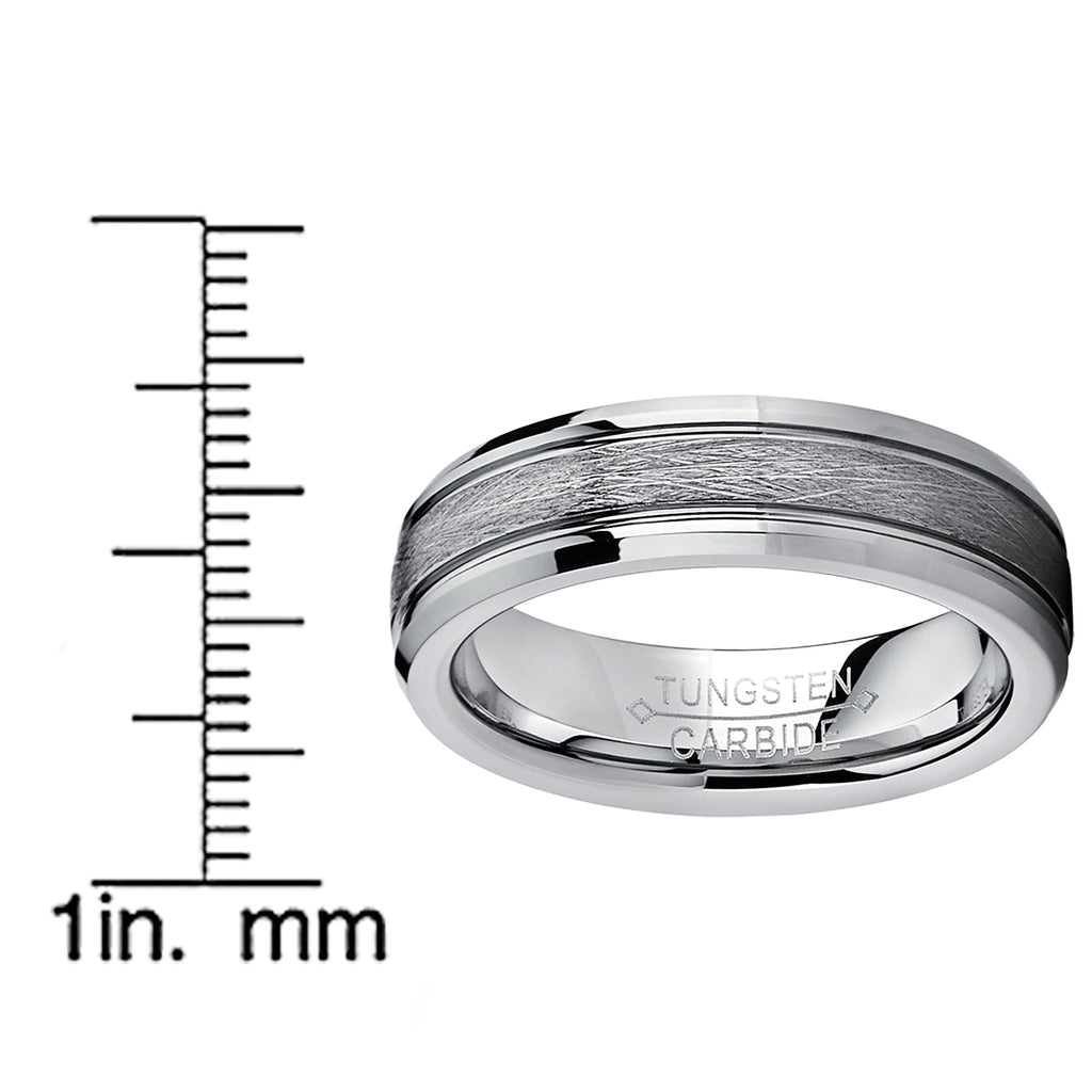 This stylish flat-top ring features a highly polished, grooved band with a brushed textured center. Crafted of durable, lightweight tungsten, this ring offers rounded edges for a Comfortable fit. If you are looking for a ring that is scratch-resistant and forever keep its shine, than our Tungsten Carbide rings are for you. All of our Tungsten rings arehypoallergenic. Due to the hardness of the metal, these rings can be laser engraved, but not hand engraved. Comes with a complimentary jewelry ring box.
