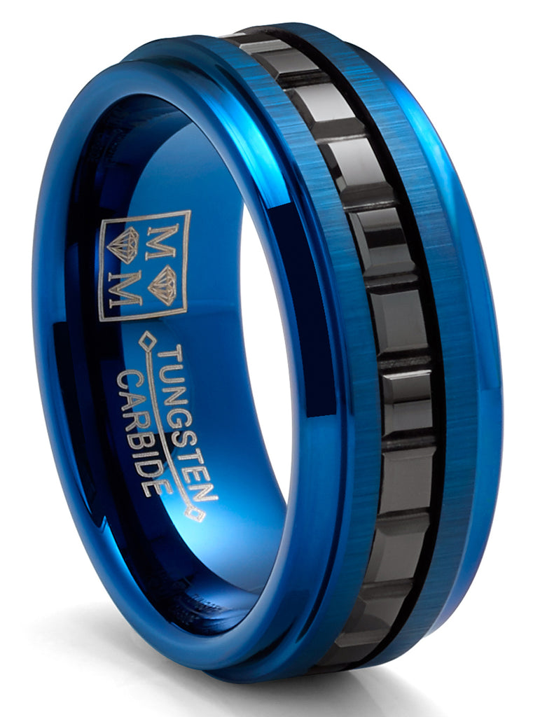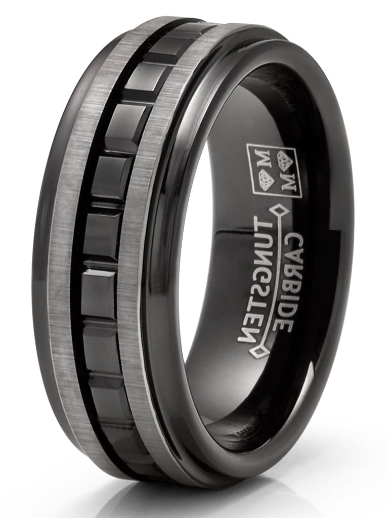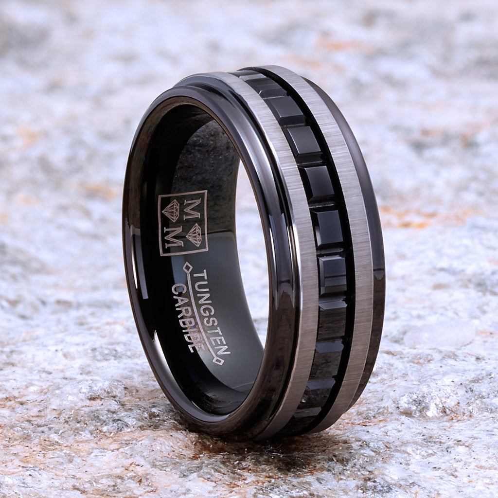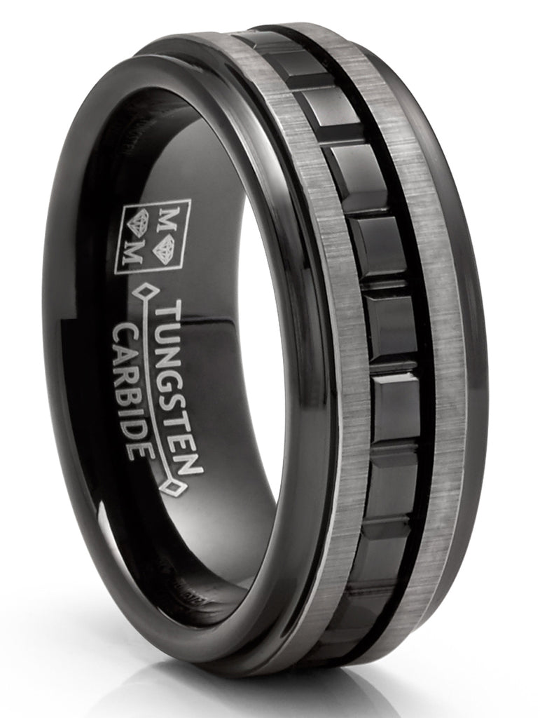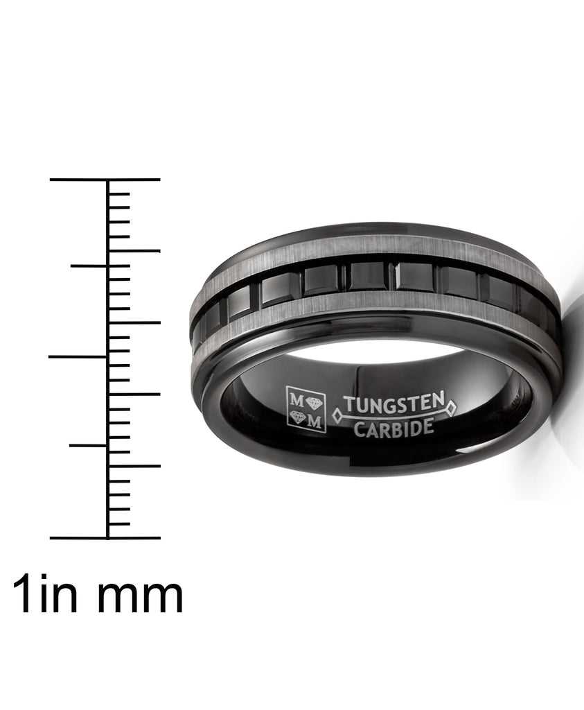 This bold, comfortable Tungsten ring for mean features a two-tone eternity design with princess illusion setting giving it a rugged yet lavish look without the stones.