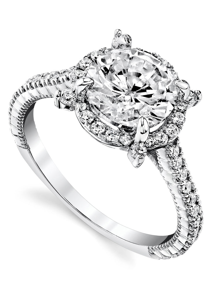 This beautiful engagement ring features a 2 carat round-cut cubic zirconia set in shining white sterling silver. The 4 prong eagle claw setting along with the round cubic zirconia behind the prong adds sparkle and brilliance as it catches the light. This bridal ring is ideal for ladies who want a glamorous ring that is affordable. Or, use it to change your look for an important evening. Choose this gleaming ring to add dazzling style to your hand.