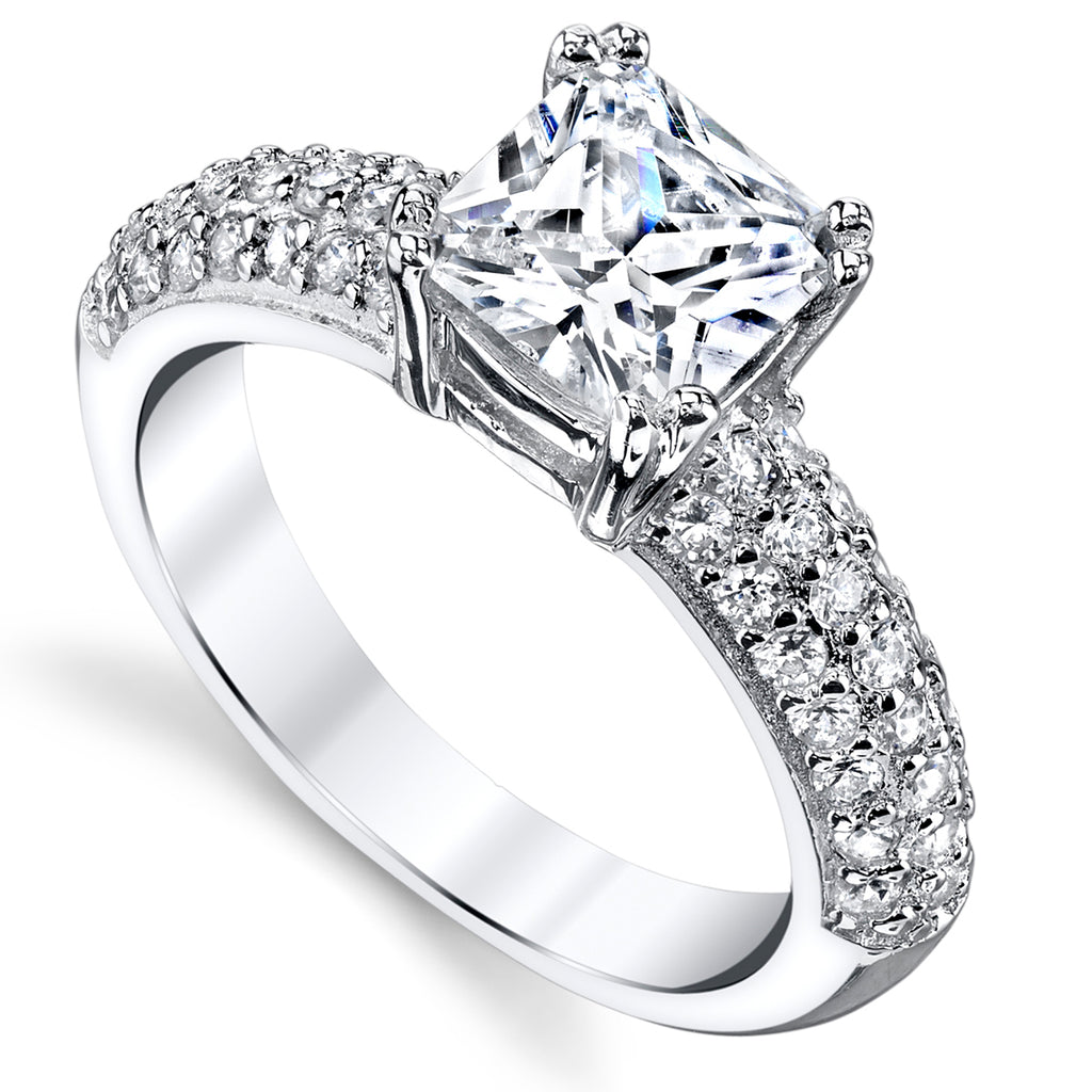 Fabulous Sterling Silver 925 engagement ring with Cubic Zirconia. The center stone is a 1.5 carat Princess and its surrounded with Pave set Cubic Zirconia. The ring is rhodium plated as well and comes with a complimentary RING BOX!!